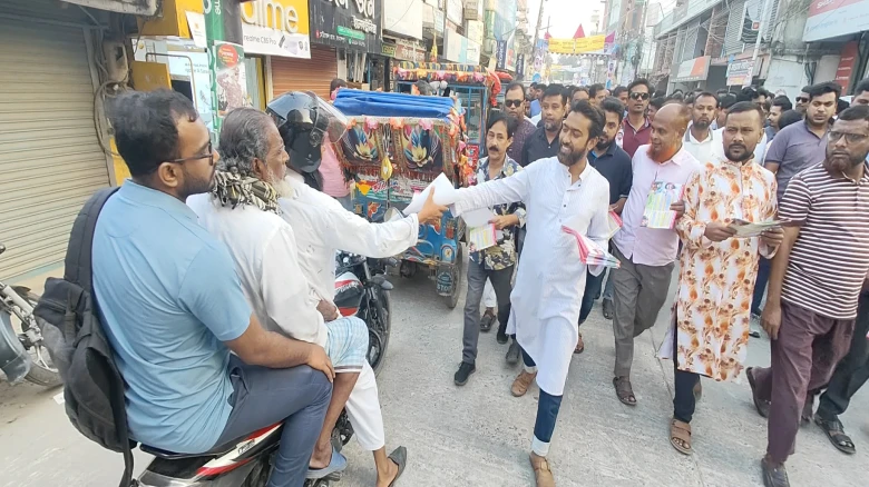 জামালপুরে লিফলেট বিতরণ করে গণসংযোগ করেছ...